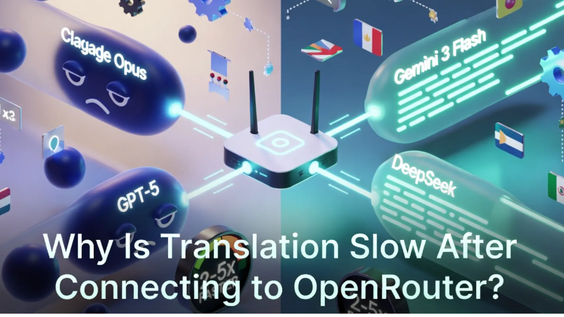 - OpenRouterで翻訳が遅くなる第1の原因は、高速なモデルではなく、本質的に遅いモデル(Claude Opus/Sonnet、GPT-5クラス、Gemini Pro)を使用していることです。